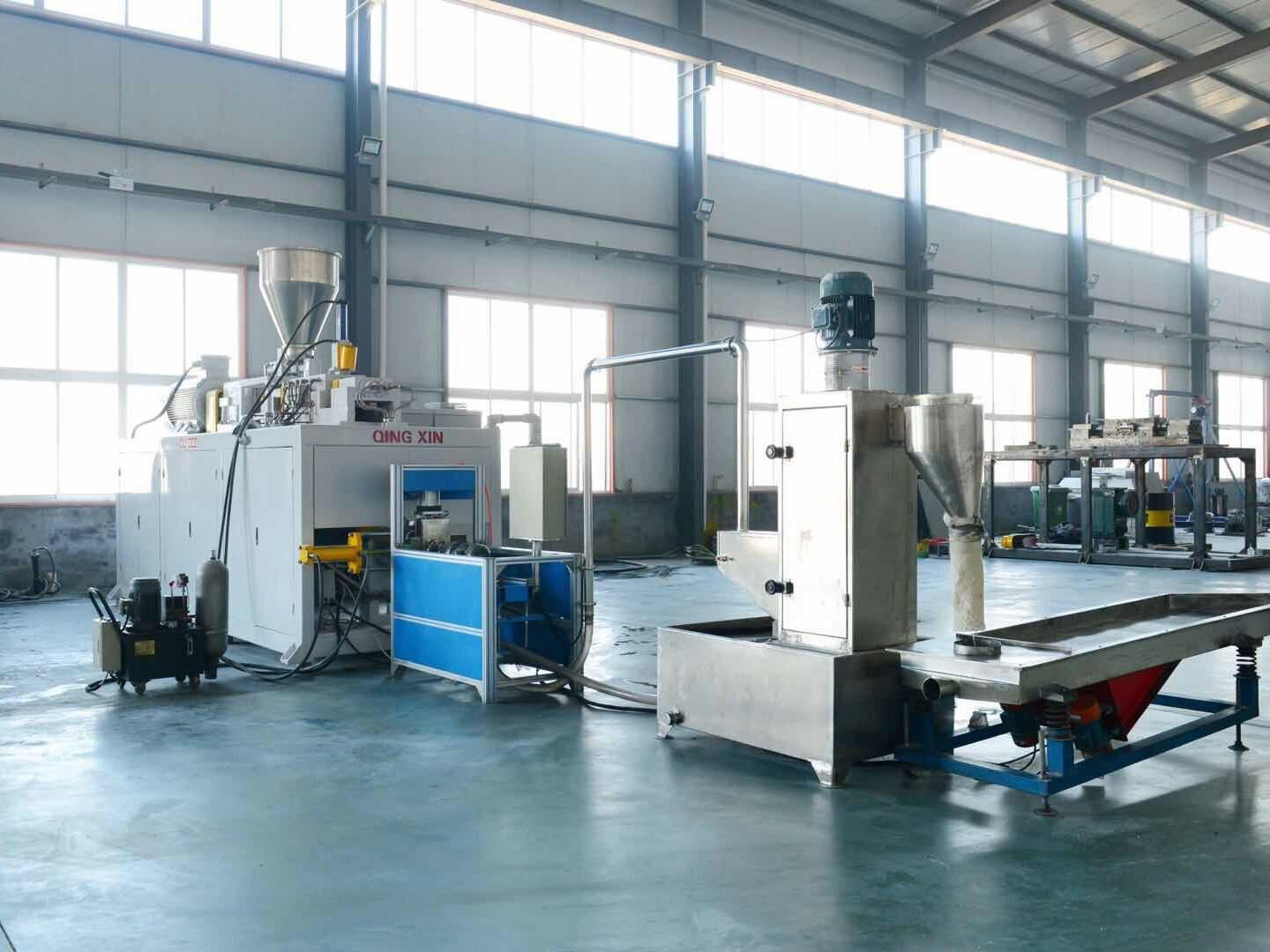 山东庆昕机械科技有限公司是一家专业从事以同向双螺杆挤出机为核心的塑料高聚物配混改性设备以及相关工艺与工程领域的技术开发,及配套辅机的科研开发和生产制造企业。拥有多名在双螺杆领域从事研究和生产的高级工程师、资深专家和经验丰富的现场调试工程师。拥有加工中心、数控镗床、车床、螺纹磨床及各种加工设备80多台,并且配备了现代化的品质检测中心,月加工筒体能力500多节,年生产机组300多台。投入巨资研制生产的多元复合流、压延石塑纸,具有耗电省、产量大、自动化程度高等特点,可根据客户的不同要求,生产不同厚度、不同面幅、不同价格、不同用途的各类石塑纸设备..